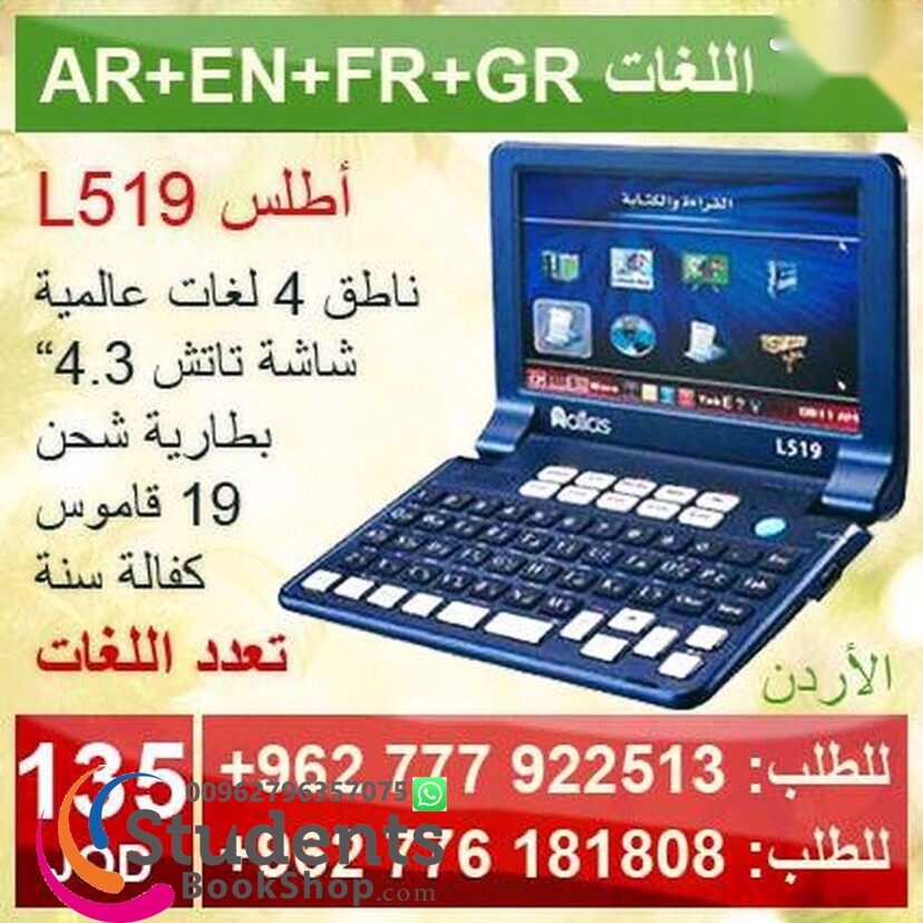 مترجم الكتروني ماركة أطلس الناطق - للمدارس والجامعات ولطلاب الترجمة والتخصصات قاموس اطلس الالكتروني الذكي الناطق - الوحيد المعتمد بالمحاضرات والامتحانات - ترجمه عرض #قاموس_اطلس الأفضل على مستوى العالم. #مترجم #أطلس الالكتروني الناطق - الوحيد المسموح استخدامه في #المدارس و #الجامعات و #الإمتحانات - يعمل بدون انترنت وسريع في الاستخدام - سهل التعامل مع #قواميس #اطلس #العالمية - غني جدا بالمعلومات والقواميس و #القواعد و #الاختبارات والتحضير للتوفل والايلتس - #كمبيوتر بحجم كف اليد وممتع في كافة المجالات مثل ال: ترجمه - هندسه - طبي - محاسبي ---------------------------------------------------- لحق حااااالك... #العرض_خطير... #أسعار_أقل و #كفالة_سنه اكسبو #العرض الآن واحصلو على: - #اسعار تبدأ من (37) دينار غير #ناطق و (45) دينار للناطق لغاية (155) دينار - #توصيل_مجاني ولفترة محدوده للطلبات فوق 60 دينار - كفالة سنه واحده وحقيقية مش كلام - العرض لمده محدوده او حتى نفاذ الكميه للطلب : #واتس و #تلفون 0777922513 0776181808 للطلب من خارج #الأردن. الشحن خلال 3 ايام عمل 00962777922513 00962776181808